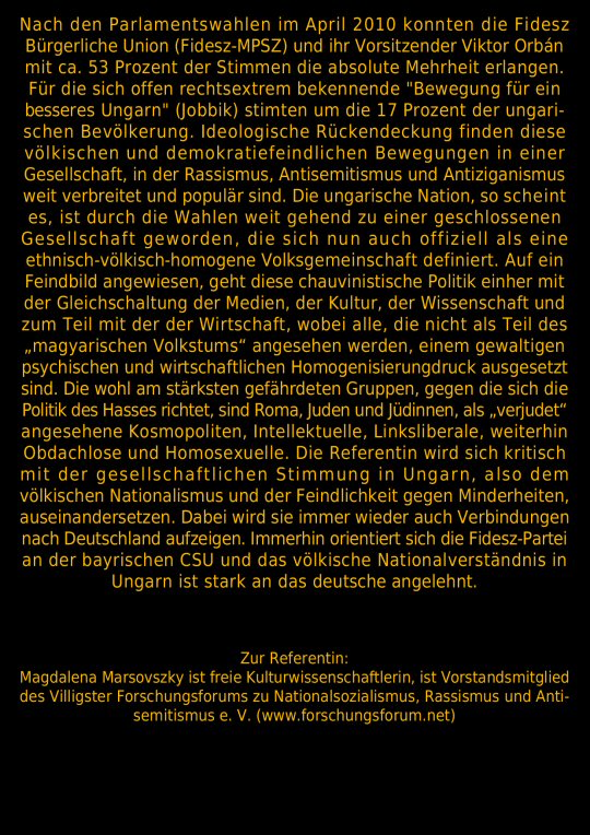 Vortrags-Tour 2011 mit der Referentin Magdalena Marsovszky…