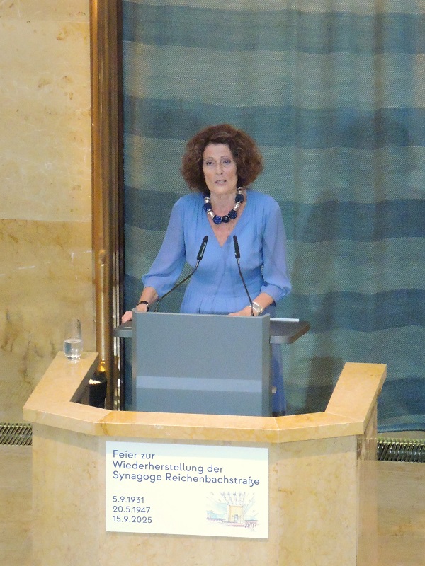 „Endlich eine positive Nachricht über Jüdisches. Es ist vollbracht. Die Reichenbachschul ist auferstanden. Sie hat Überlebenswillen bewiesen.“ Mit diesen Worten und begleitet von herzlichem Beifall eröffnete die Literaturwissenschaftlerin, Publizistin und Autorin, Dr. Rachel Salamander, die Feier zur Wiederherstellung der Synagoge Reichenbachstraße.
