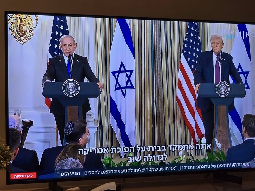 Mit Spannung erwartet traten US-Präsident Trump und Israel Premier Netanyahu nach langen Beratungen gestern Abend vor die Presse. Trumps Rede überschlug sich natürlich in Superlativen. Aber wer würde einen „ewigen Frieden“ im Nahen Osten nicht gutheißen?