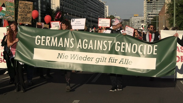 Ein politisches Signal, das jenseits legitimer Versammlungsfreiheit als Entproblematisierung realer antisemitischer und extremistischer Inhalte wirkt. Neben humanitären Appellen („Leid in Gaza“) waren mehrfach Maximalparolen zu hören. Der Vorwurf eines „Genozid“ und „Apartheidstaat“ dominierten inhaltlich die beiden Demos. Genauso wie Forderungen nach vollständigem Ende militärischer Zusammenarbeit und „staatlicher Komplizenschaft“. Diese Rhetorik trug die Kernbotschaften der Aufrufe auf die Bühne.