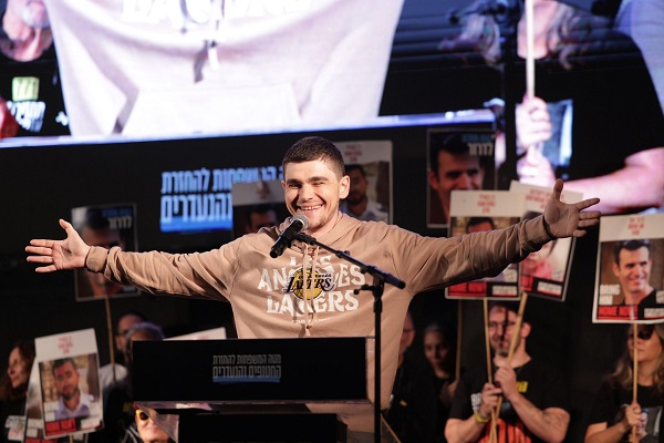 Auch Maksym Herkin bedankte sich: „Zwei Jahre lang habe ich von diesem Moment geträumt, von diesem Privileg, hier zu stehen, mit nur einem Ziel: Euch zu danken. Ihr seid die wahren Helden. Ihr habt mich nach Hause gebracht. Wir werden all unsere Kraft und Stärke einsetzen, um unser Ziel zu erreichen und alle Geiseln nach Hause zu bringen. Und ich bitte Euch alle, alle, die uns zusehen, nicht nur in Israel, sondern weltweit, alle, die uns unterstützen und helfen – ich schätze und bewundere Euch alle. Haltet daran fest. Trotz aller Schwierigkeiten und all des Leids, das uns widerfahren ist, dürfen wir diese gegenseitige Unterstützung, diese Hilfe, all unsere Kraft nicht verlieren. Wir müssen einfach weitermachen, sie wertschätzen, und wir werden das schaffen. Ich möchte Euch allen von ganzem Herzen danken. Ich verdanke Euch mein Leben.“
