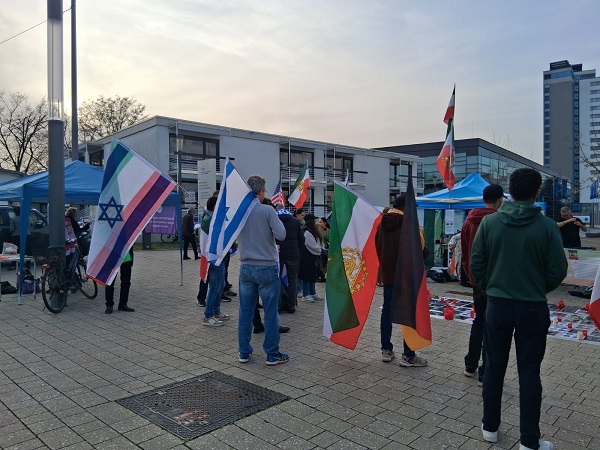 Ein Kopfschütteln und hin und wieder einmal ein dezentes Tippen an die Schläfe können die versammelten Demonstrierenden denjenigen entlocken, die sich am Freitagabend durch die Sicherheitspforte der Vereinten Nationen in Bonn nach draußen stehlen und ihren Weg in den Feierabend antreten. Eine Gruppe von etwa 50 Personen, aufgerufen von iranisch-israelisch-jüdischen Gruppierungen, hat sich zusammengefunden, um vor dem Gelände der Vereinten Nationen ihre Unterstützung von Demokratie und Freiheit für Iran und den Nahen Osten zu bekunden.