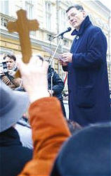 und versuchte damit zu signalisieren, dass in Ungarn eine Christenverfolgung