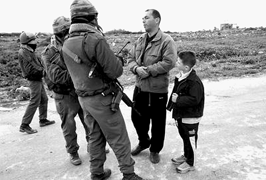 Zivilisten beim Passieren der Sperren absurdesten Schikanen ausgesetzt.