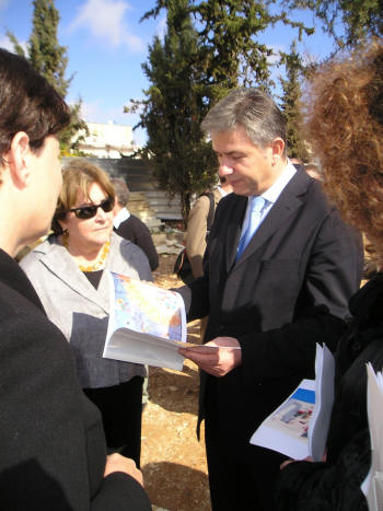 Landsberg (beide Jerusalem Foundation) auf der Baustelle genauestens über