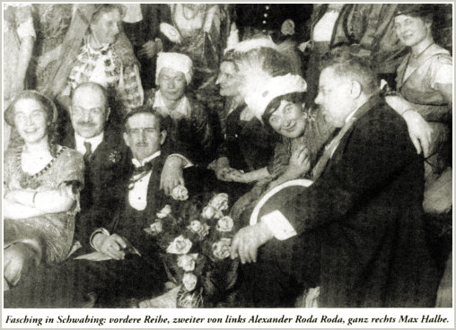 Hauptsitz des "jungen" München war also Schwabing. Brentanos Utopie einer "poetischen Existenz" wurde dort allenthalben wiederbelebt. Kunstandachten, Künstlerfeste, Faschingsbälle, das "selbstvergnügte Capua", an das sich Thomas Mann noch 1944 erinnern wird, wurden zum Markenzeichen. Schwabing wurde beschrieben mit "... seinen esoterischen Koterien, die hinter dem Siegestor ästhetische Abendfeiern zelebrierten, seiner in öffentliches Wohlwollen gebetteten und grundbehaglichen Boheme"63.