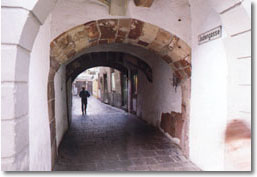 und Jacobsgasse. Ein Tor, ehemals ein Eingang ins Judenviertel, ist Ecke