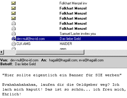 'gehackt' wurden. Mehrere Websites die im Winter'98 unsere Anschrift und