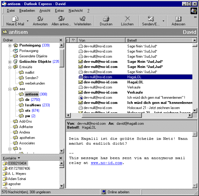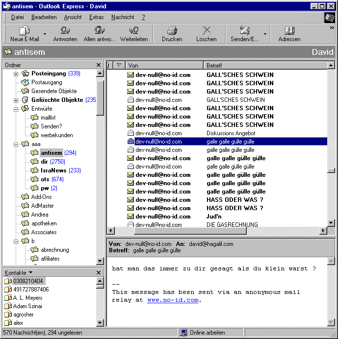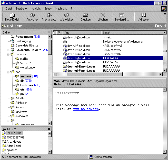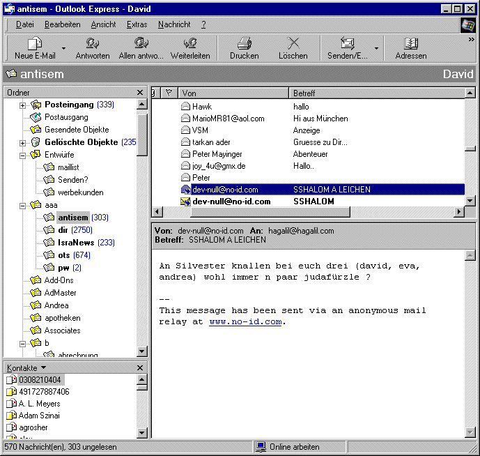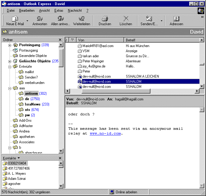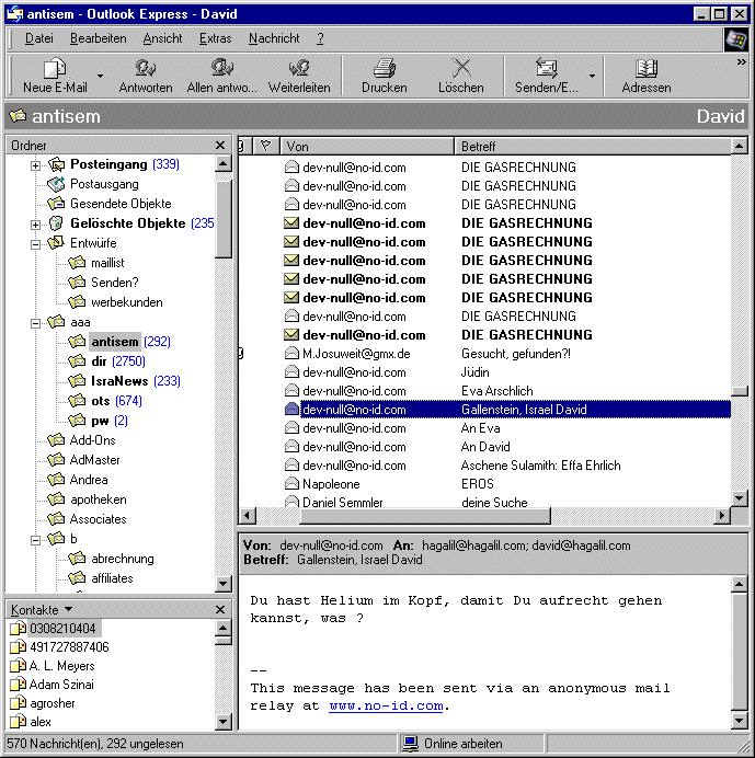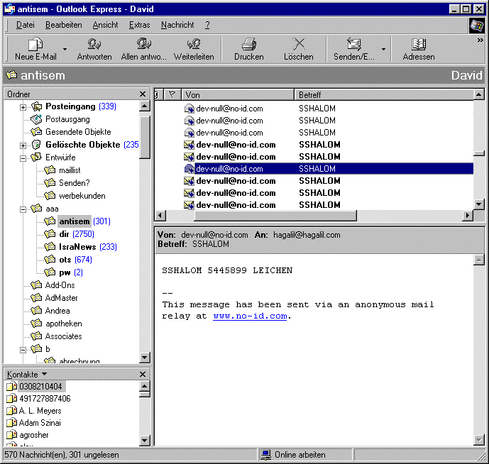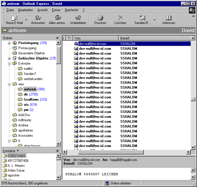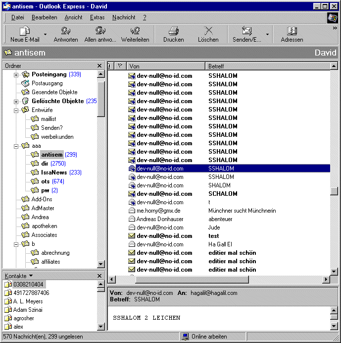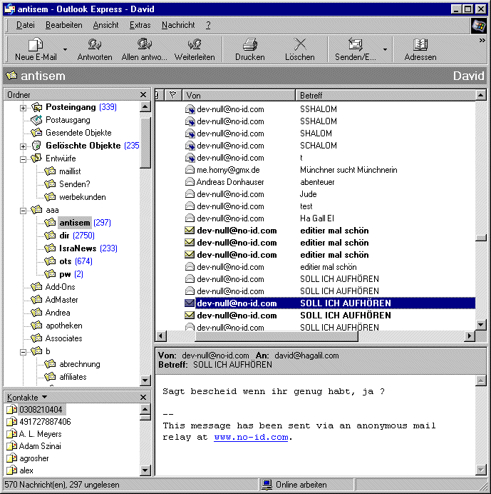 IST GEGEN DIESE BILLIGE ONLINEDIENST VON HAGALIL! 10.4.99 (0)