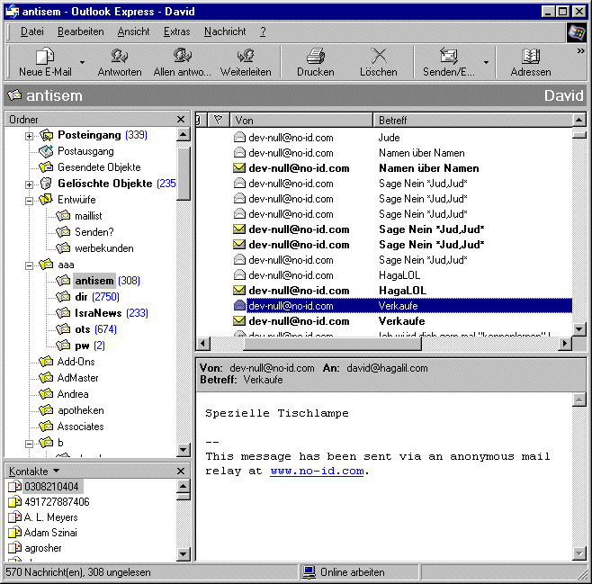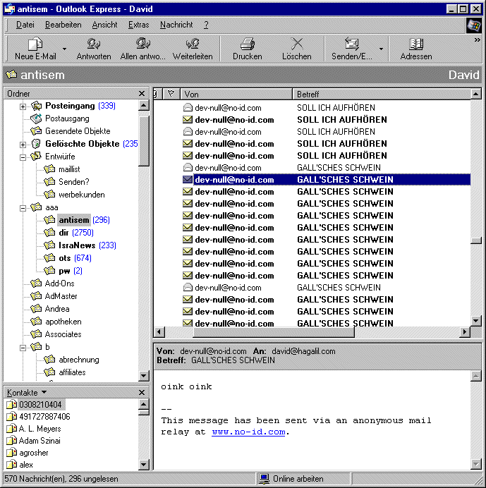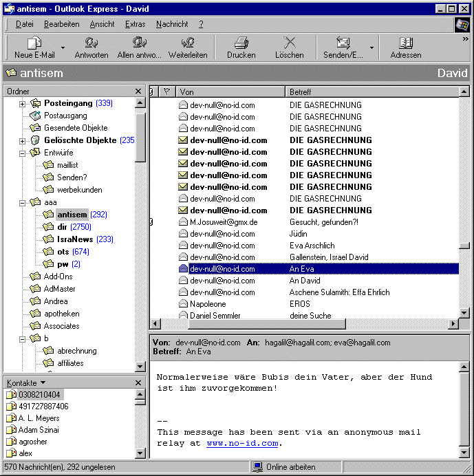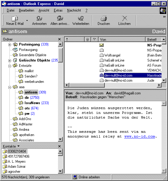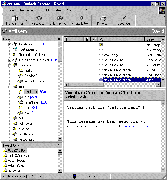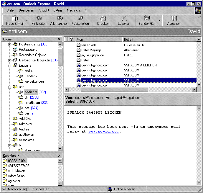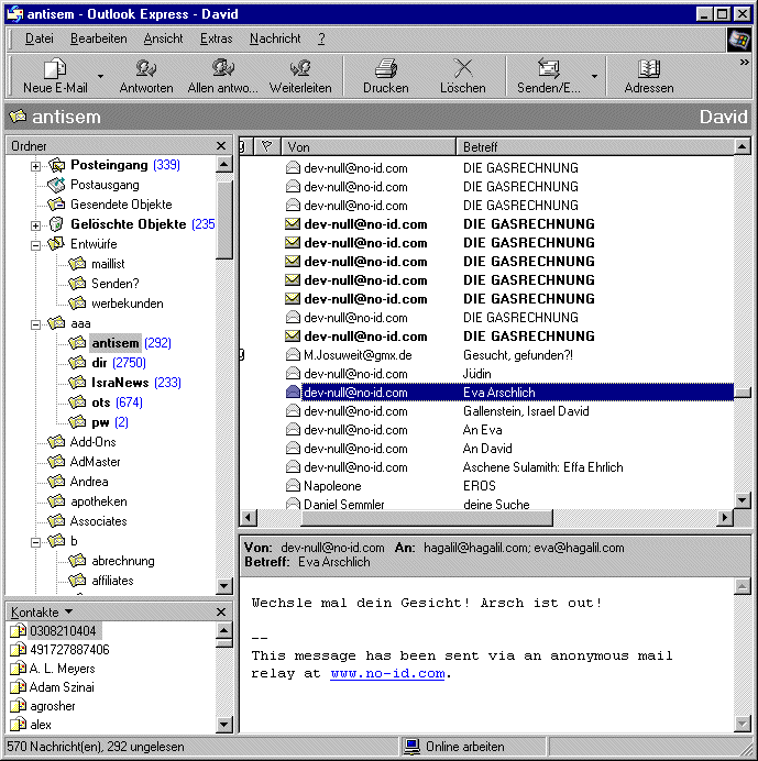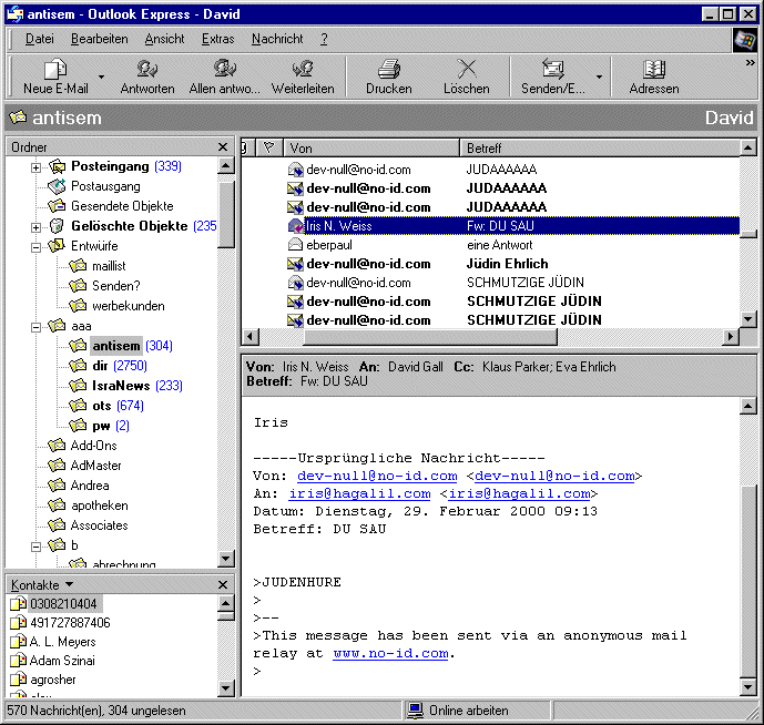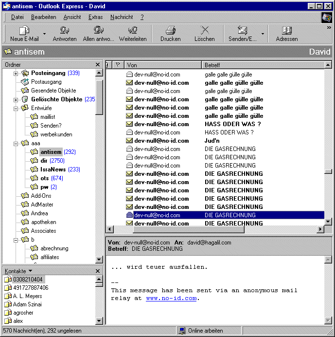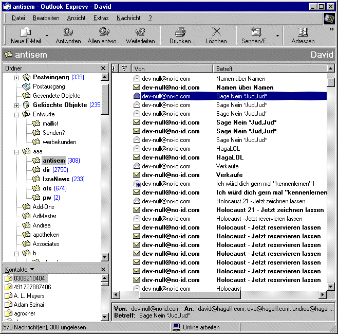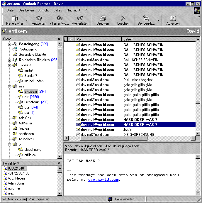 IST GEGEN DIESE BILLIGE ONLINEDIENST VON HAGALIL! 10.4.99 (0)