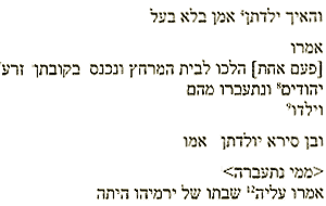 Man hat über sie gesagt, dass sie die Tochter Jeremias (Jirmijahus) war.